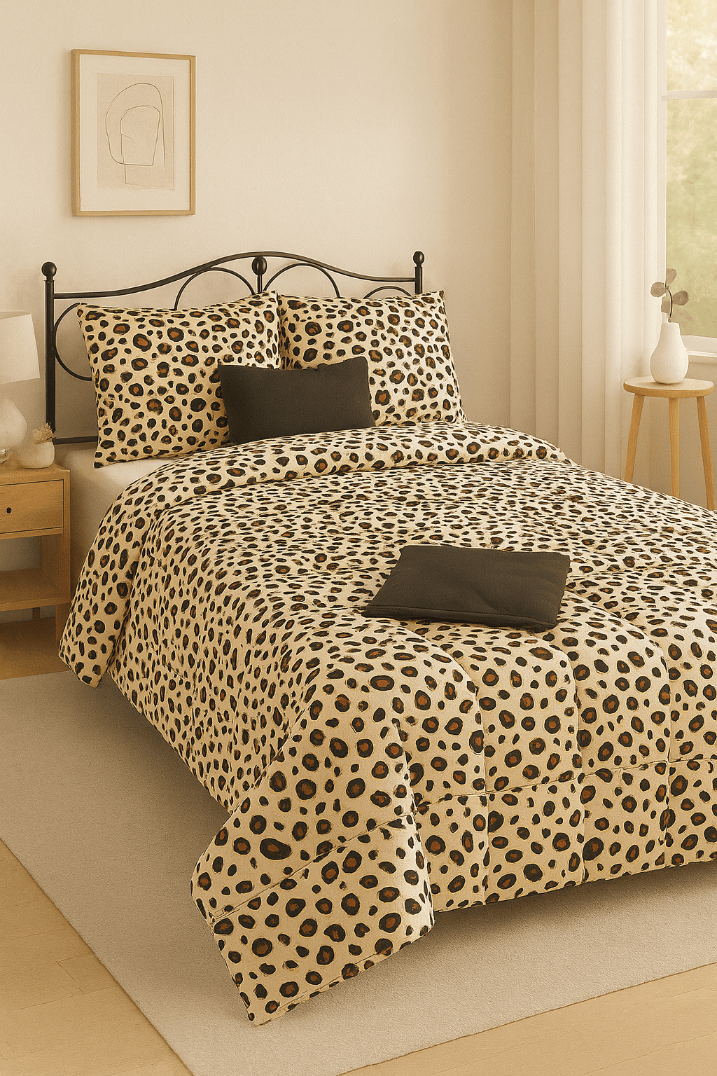 Με τις έντονες αποχρώσεις και το εντυπωσιακό animal print μοτίβο σε μπεζ-καφέ με μαύρες λεπτομέρειες, αποτελεί μια μοντέρνα και εκλεπτυσμένη επιλογή που θα δώσει ζωντάνια και πολυτέλεια στον χώρο σας.