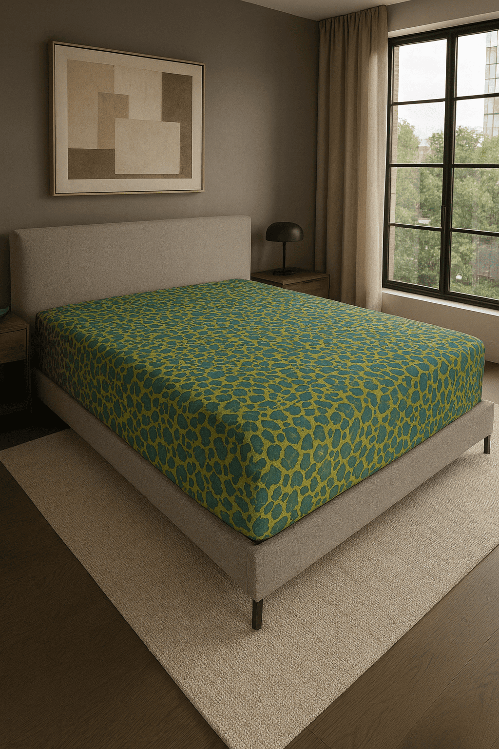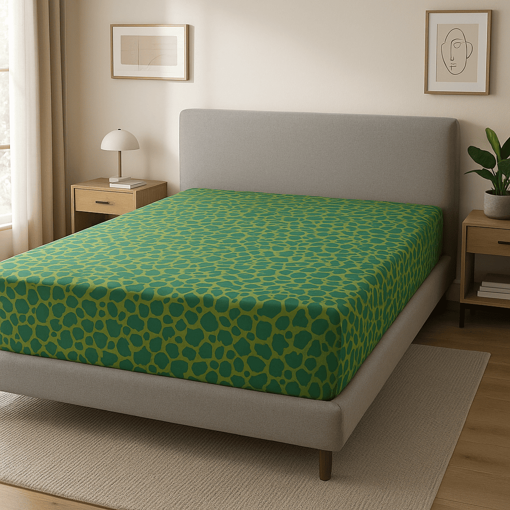 Σεντόνι μακό διπλό με λάστιχο leopard πράσινο σειρά jersey