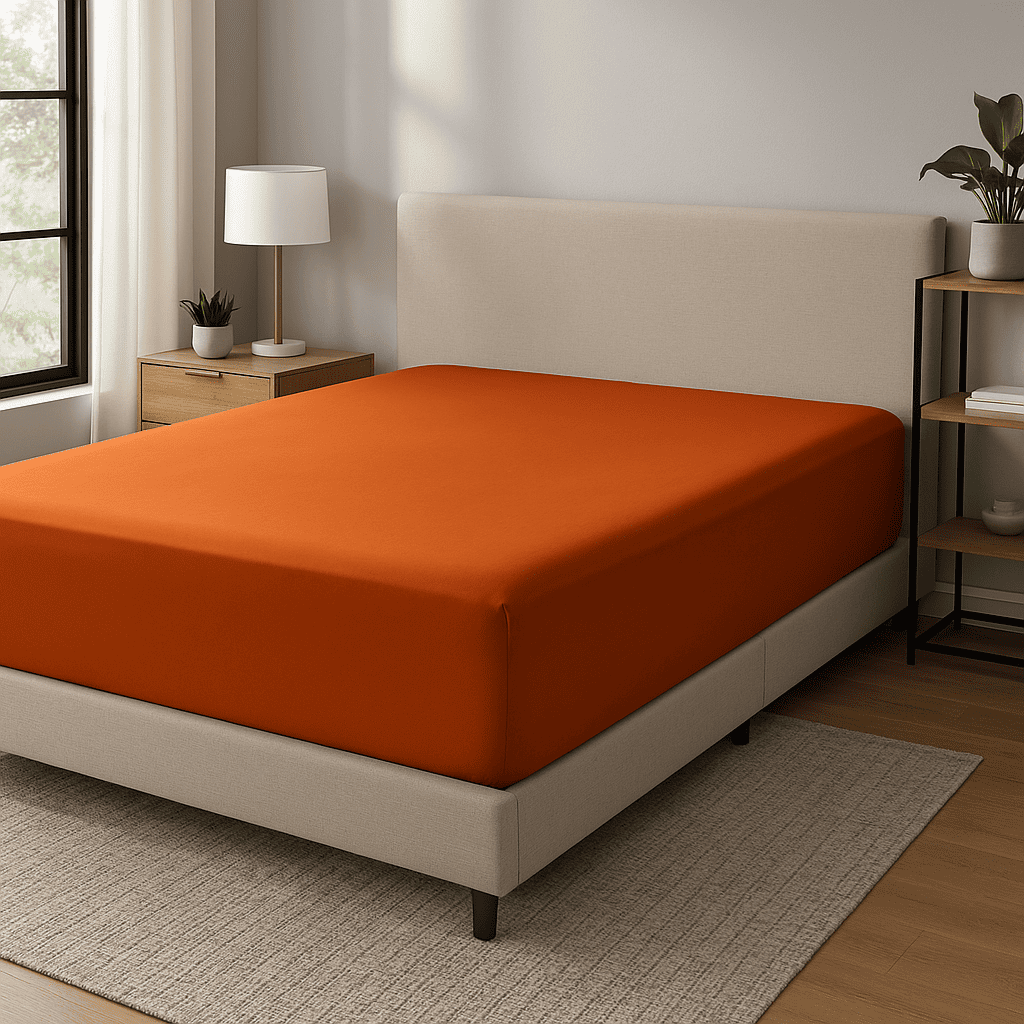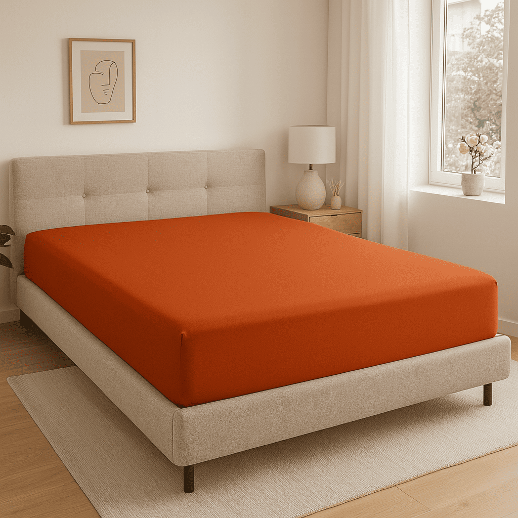 Σεντόνι μακό διπλό με λάστιχο πορτοκαλί σειρά jersey